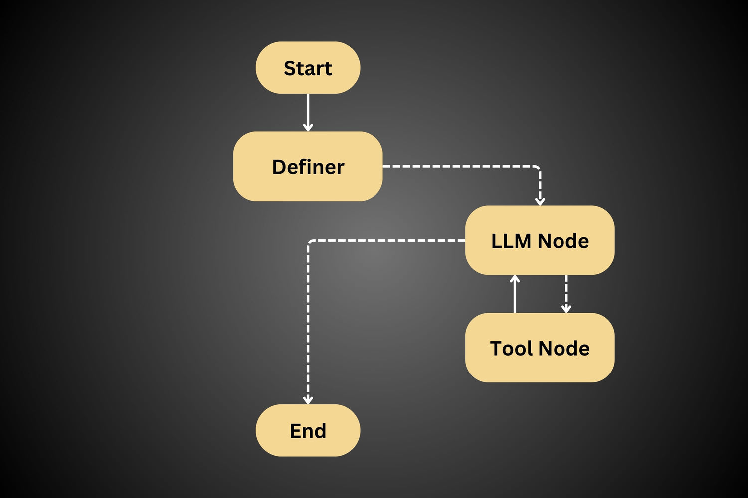 To keep the performance gain of domain specific agents and allow complex multi-turn problems to be solved a definer was added before the main agent process. This node defines the correct persona and tools for the agent to complete its tasks in the most effective manner.